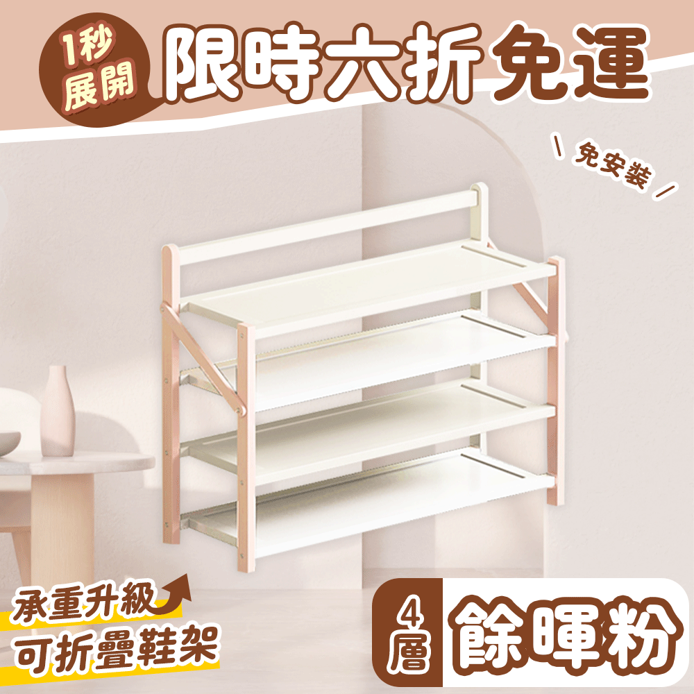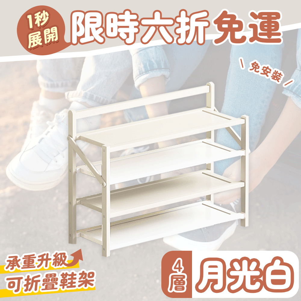 2分鐘前鞋控救星【免安裝折疊鞋架】一架多用節省空間 - 免安裝折疊鞋架【四層】