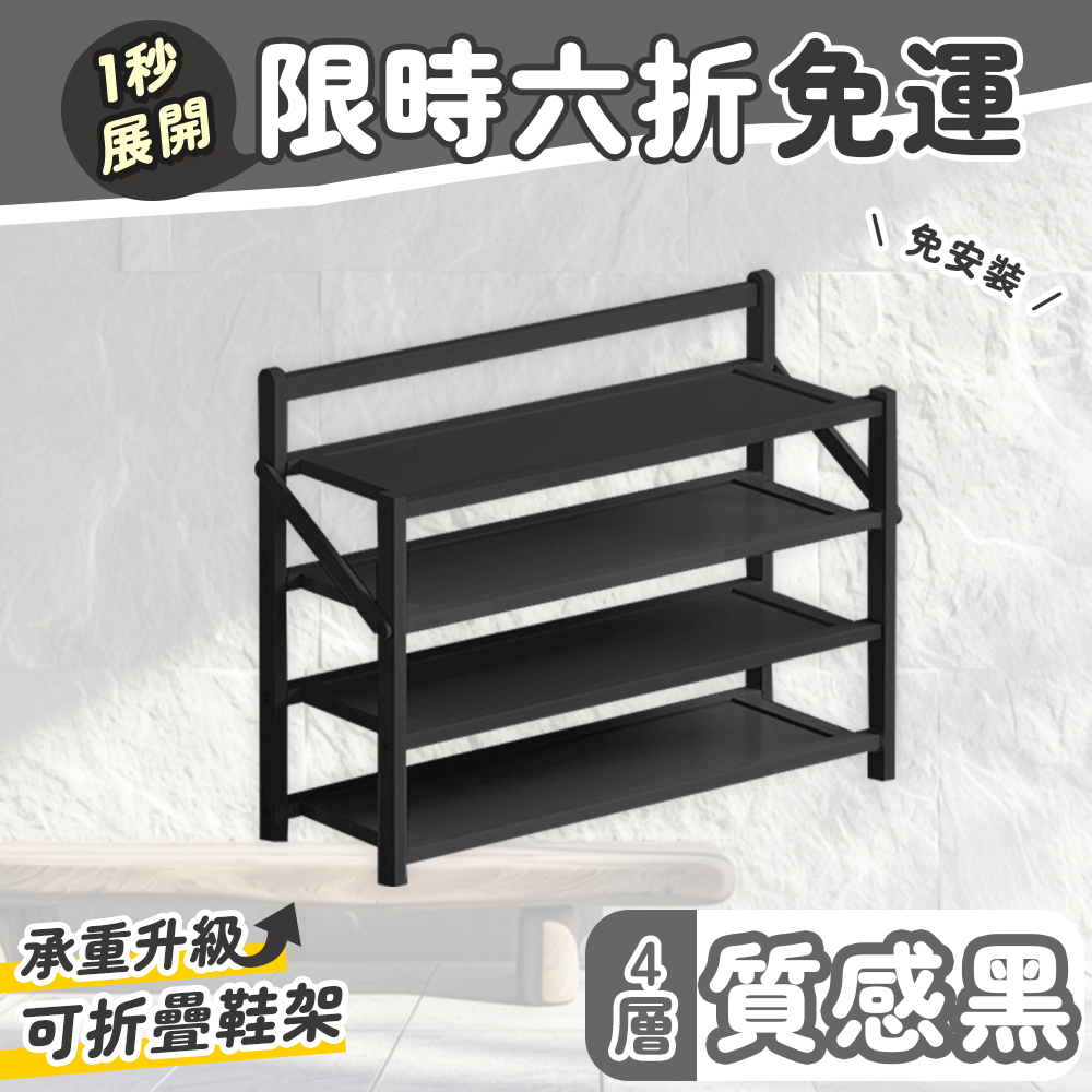 4分鐘前鞋控救星【免安裝折疊鞋架】一架多用節省空間 - 免安裝折疊鞋架【四層】