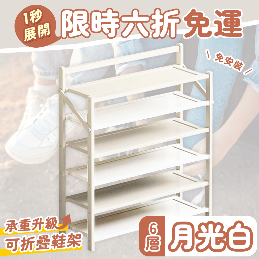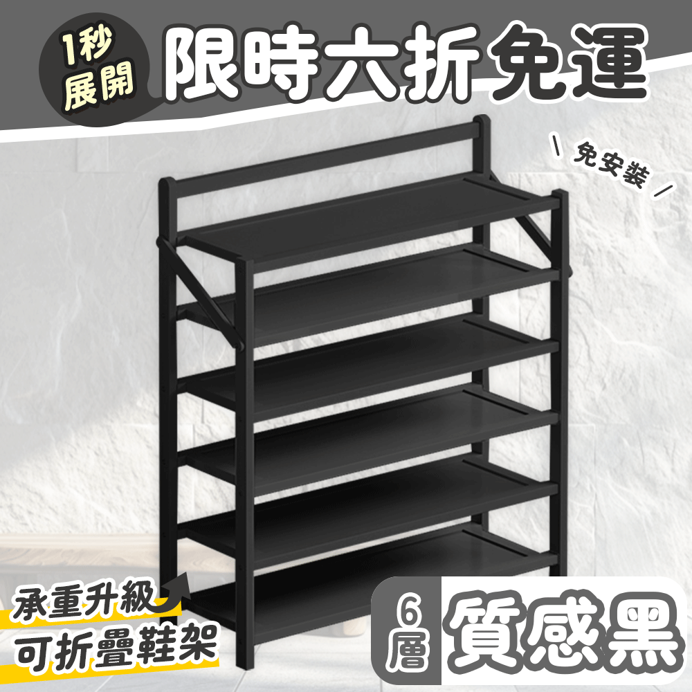 2分鐘前鞋控救星【免安裝折疊鞋架】一架多用節省空間 - 免安裝折疊鞋架【六層】