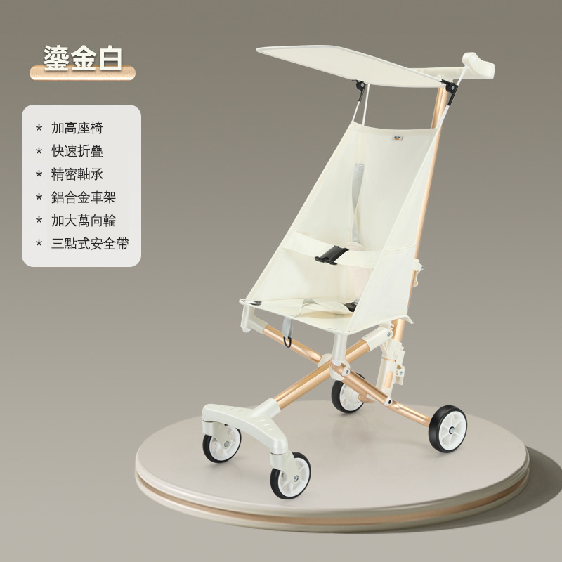 7分鐘前【能上飛機的嬰兒推車】新款鋁合金嬰兒推車 輕便可折疊 出行易攜帶 - 鎏金白輕便折疊嬰兒推車