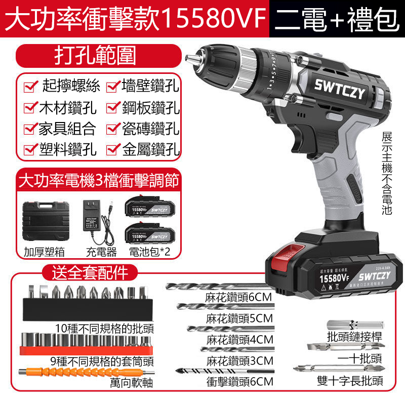 半小時前德國大功率 雙速衝擊鋰電鑽 純銅電機 無極變速 雙軸承設計 十年換新 - 進口衝擊15580VF塑箱2電+豪禮 NT$1980