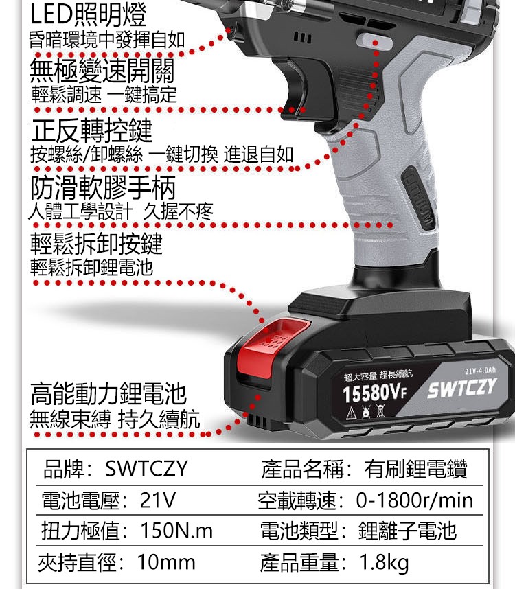 7分鐘前德國大功率 雙速衝擊鋰電鑽 純銅電機 無極變速 雙軸承設計 十年換新 - 進口衝擊15580VF塑箱1電+豪禮 NT$1680