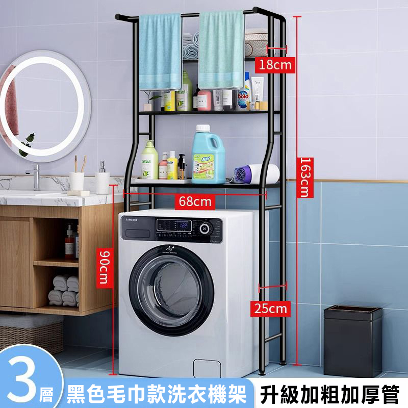 25分鐘前浴室收納必備!馬桶/洗衣機專用置物架,完美利用每一寸空間,整潔又實用! - 【黑色】3層洗衣機置物架