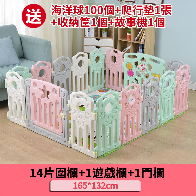 20分鐘前愛他/她!就給他/她滿滿的愛!寶寶學步遊戲圍欄,呵護寶寶安全【週年特賣,買1送4】 - 可折疊普通款【送爬行墊+海洋球+故事機+收納籃】14圍欄+1遊戲欄+1門欄