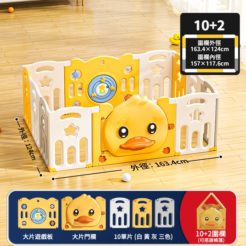5分鐘前愛他/她!就給他/她滿滿的愛!寶寶學步遊戲圍欄,呵護寶寶安全【週年特賣,買1送4】 - 可折疊小鴨子款【10+2】124-163cm圍欄