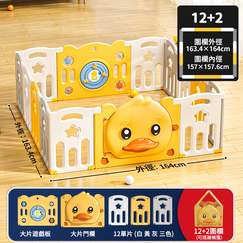 15分鐘前愛他/她!就給他/她滿滿的愛!寶寶學步遊戲圍欄,呵護寶寶安全【週年特賣,買1送4】 - 可折疊小鴨子款【12+2】163-164cm圍欄