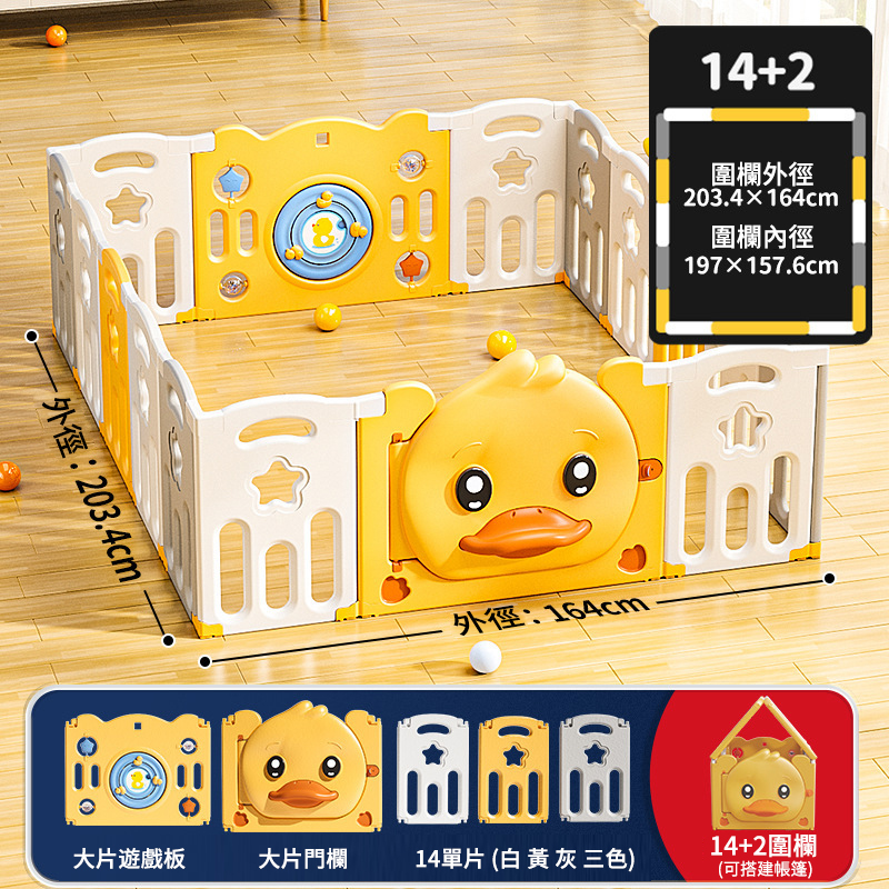 5分鐘前愛他/她!就給他/她滿滿的愛!寶寶學步遊戲圍欄,呵護寶寶安全【週年特賣,買1送4】 - 可折疊小鴨子款【14+2】164*203cm圍欄