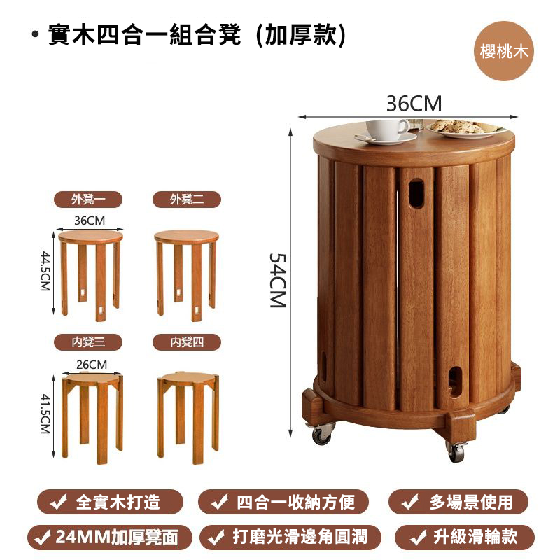 半小時前全實木可疊放凳 升級6入組|多功能茶几椅子 二合一設計 MIT台灣製造|茶几+椅子一次搞定 - 【4合1】免安裝-全實木加厚-可疊放【兩大+兩小】底托+萬向輪---NT$4760