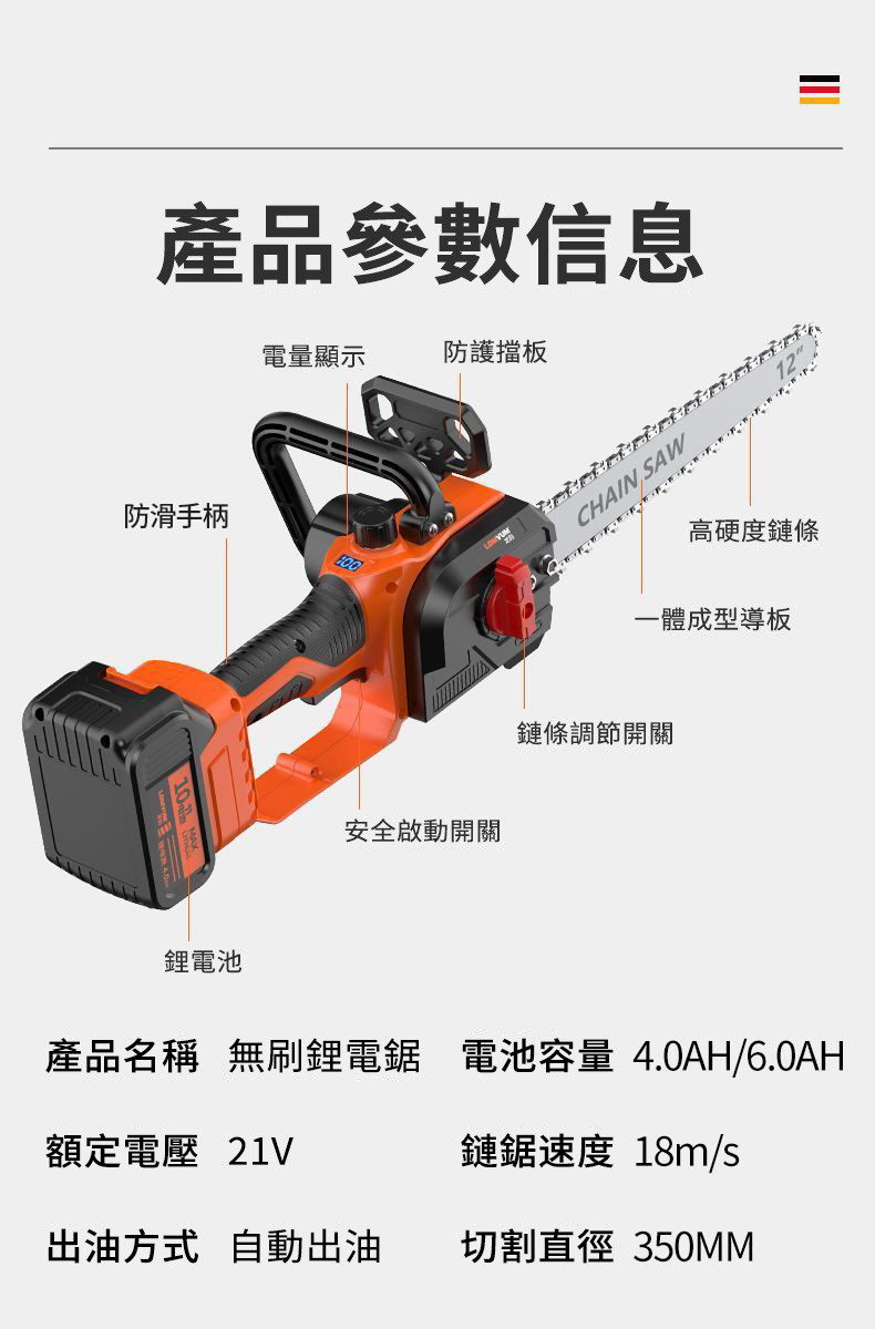 7分鐘前千元直降【東林官方 回饋國人】國民品牌 全新東林12吋鋰電伐木鋸 下訂僅需1980元!最後88組(保固一年 損壞包退換) - 12吋鋰電鋸(15節鋰電池)一電一充
