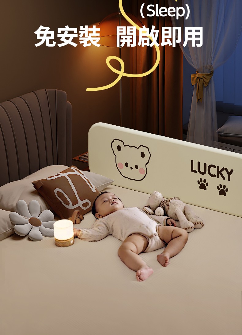 2分鐘前隨時隨地守護寶寶睡眠安全!【多貝嬰】可折疊防摔防護欄,免安裝,打開即用,旅行出遊方便攜帶 - 1.8米-免安裝折疊款