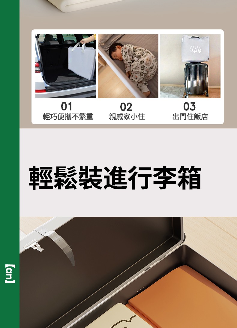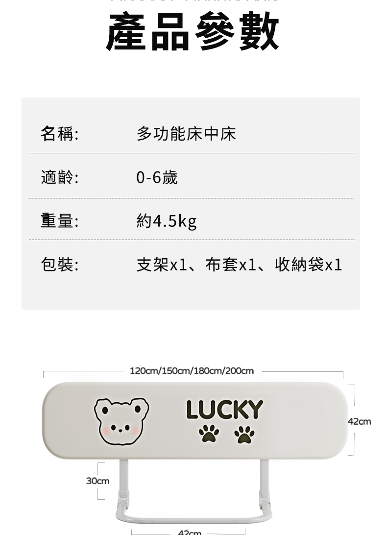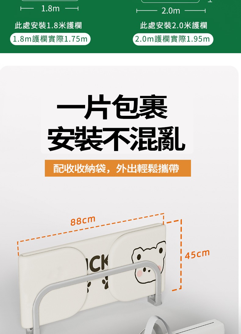 5分鐘前隨時隨地守護寶寶睡眠安全!【多貝嬰】可折疊防摔防護欄,免安裝,打開即用,旅行出遊方便攜帶 - 1.8米-免安裝折疊款