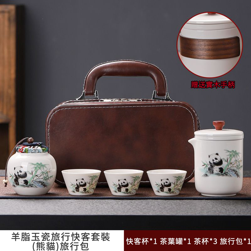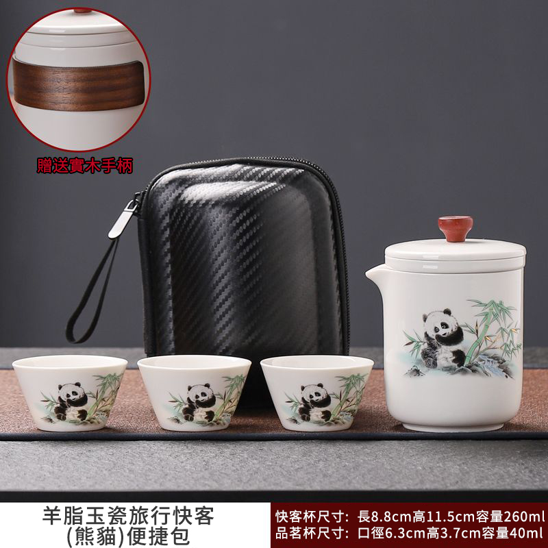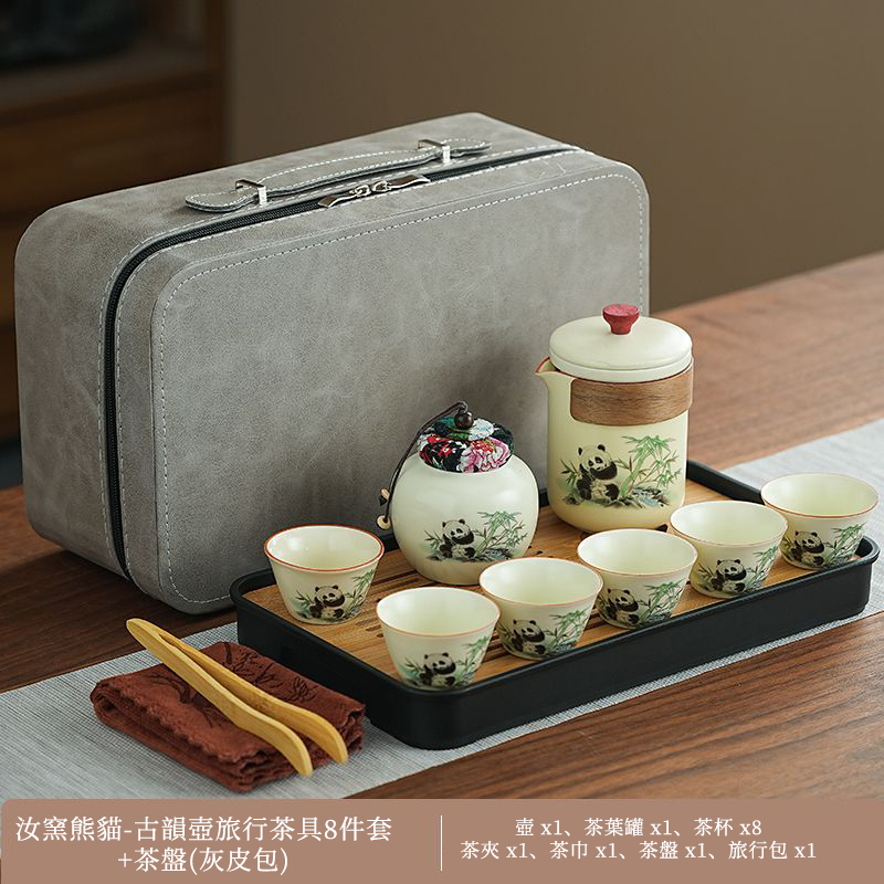 見慣了常見的天青色,今天給推薦大家與眾不同的:“熊貓·黃汝旅行茶具套裝”