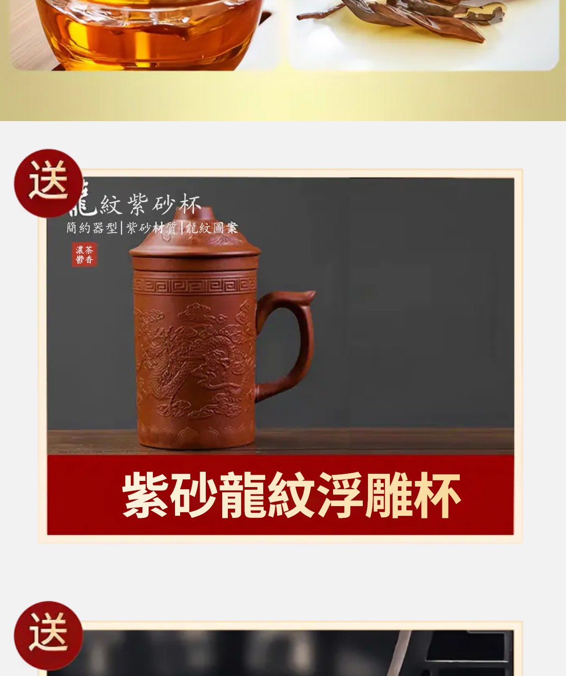 2分鐘前【蛇年到,禮真到】一次品嚐六大濃香型紅茶組合送精美[紫砂龍紋杯紫砂+紫砂一壺四杯+清明上河圖紫砂茶葉罐6個] - 六大紅茶+紫砂1壺4杯+清明上河圖紫砂茶葉罐6個---NT$1980