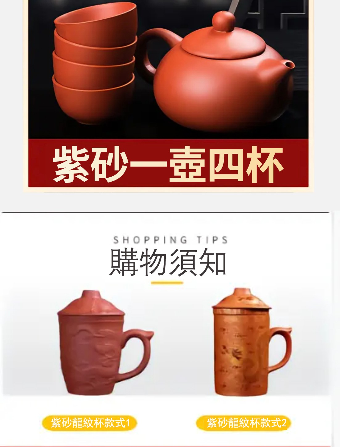 20分鐘前【蛇年到,禮真到】一次品嚐六大濃香型紅茶組合送精美[紫砂龍紋杯紫砂+紫砂一壺四杯+清明上河圖紫砂茶葉罐6個] - 六大紅茶+紫砂1壺4杯+清明上河圖紫砂茶葉罐6個---NT$1980