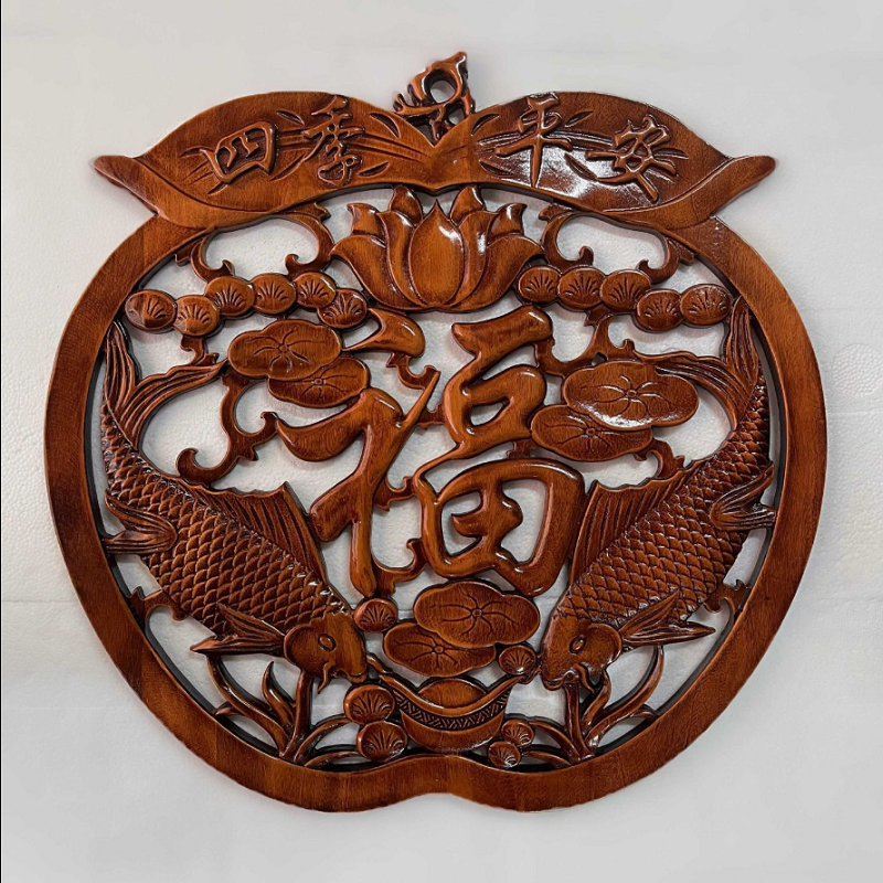 半小時前年到!福到! [東陽木雕] 傳承千年木上巧思——天然香樟木雕刻掛件 久放升值 家中旺!年年順! - 典藏款-扇形80*40cm---NT$2480