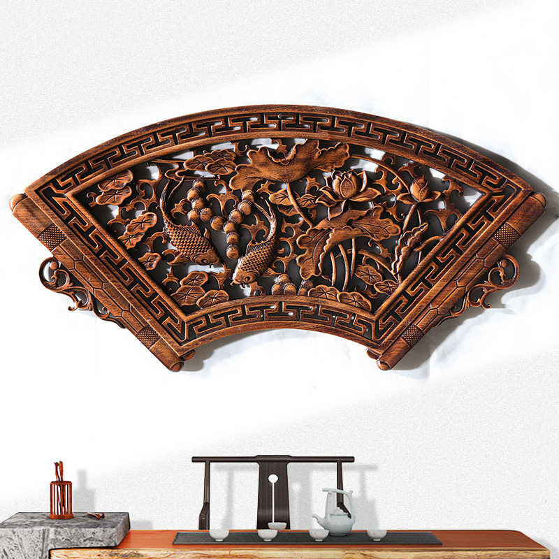 半小時前年到!福到! [東陽木雕] 傳承千年木上巧思——天然香樟木雕刻掛件 久放升值 家中旺!年年順! - 典藏款-扇形118*58cm---NT$4880