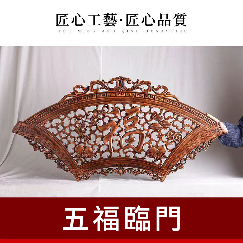 15分鐘前年到!福到! [東陽木雕] 傳承千年木上巧思——天然香樟木雕刻掛件 久放升值 家中旺!年年順! - 典藏款-扇形118*58cm---NT$4880