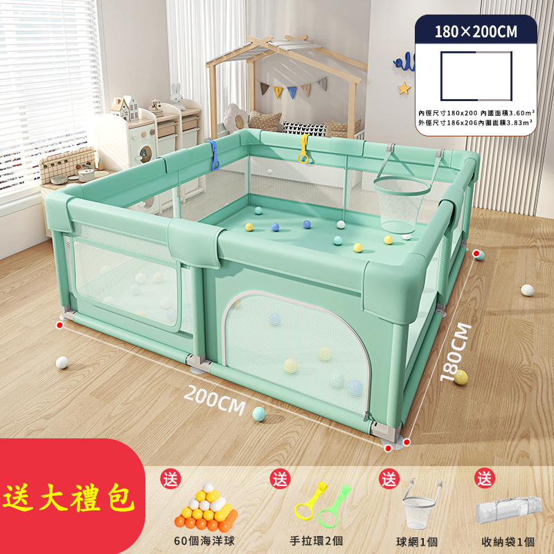 半小時前爸媽社團一致好評!寶寶玩得安心,爸媽終於能喝口熱咖啡【全台熱銷】可移動嬰兒遊戲圍欄!安全防護+防撞設計+輕鬆收納!,室內安全必備! - 180 X 200公分 +小球框+大禮包