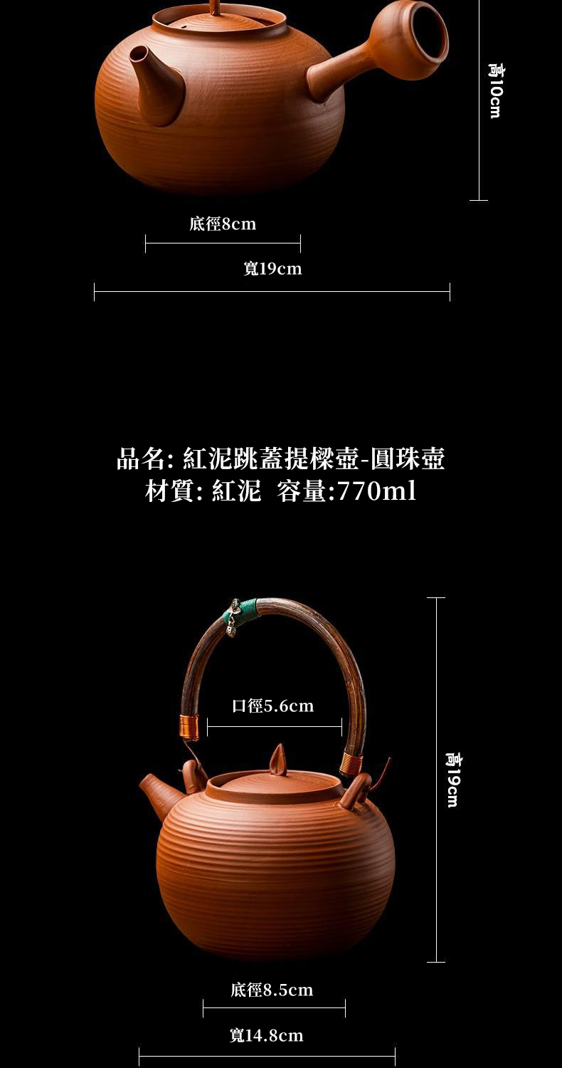 半小時前2025年新中式會跳舞的原礦紅泥砂銚壺 ❘ 純手作 側把急須壺圍爐煮茶壺 - 紅泥跳蓋提梁壺-圓珠壺